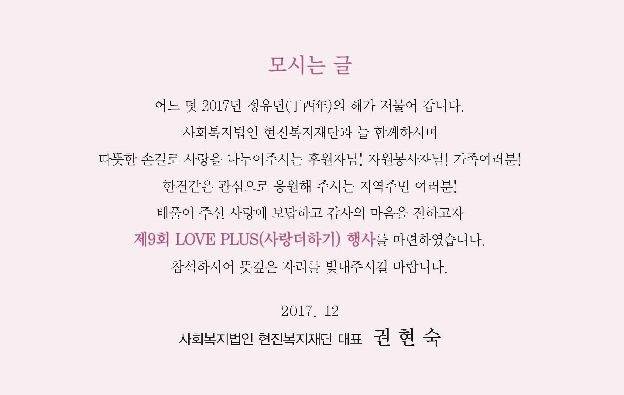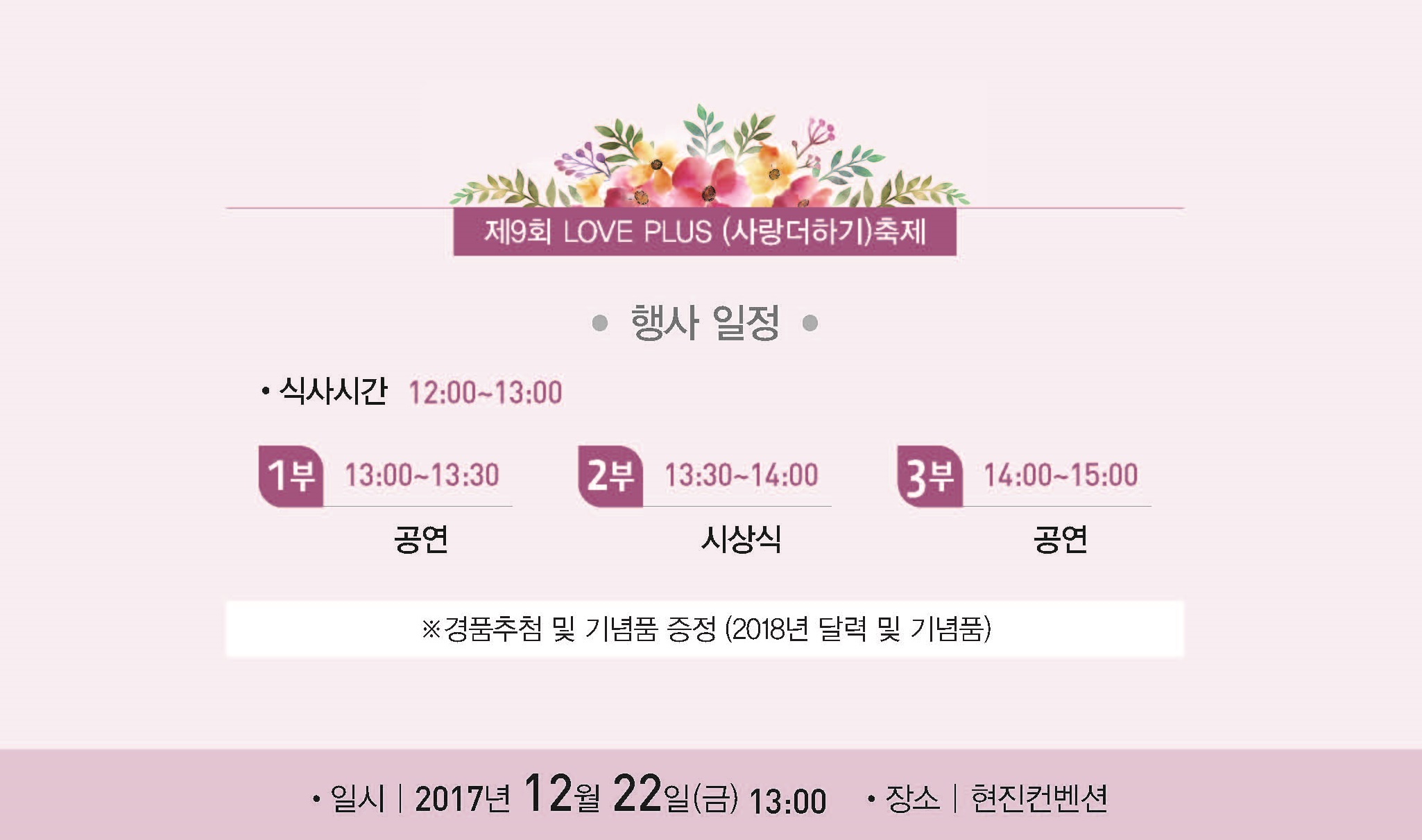 지역주민과 함께하는 제 9회 LOVE PLUS(사랑더하기) 축제에 초대합니다.